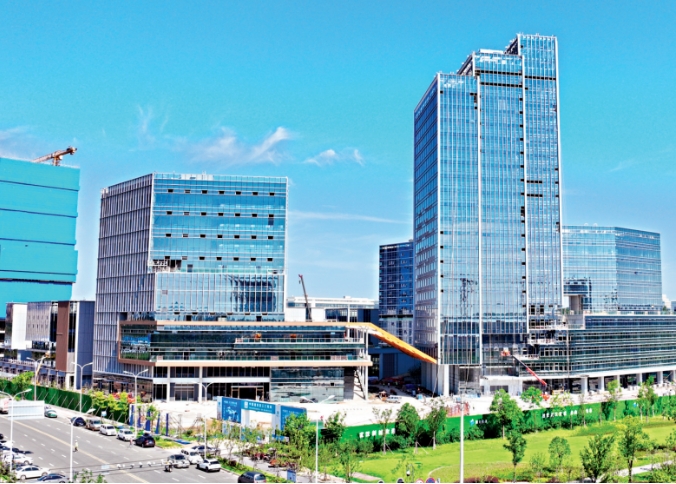 蔡甸区沌口小区东风大道512号,联东U谷·武汉国际创新中心项目建设工地上,挖掘机、运料车等各类工程车辆来回穿梭,一期12栋楼正在进行结构砌筑阶段,8月底主体结构将封顶。