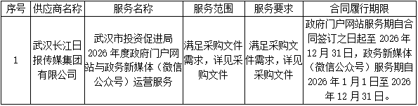 武汉市投资促进局2026年度政府门户网站与政务新媒体(微信公众号)运营服务成交结果公告