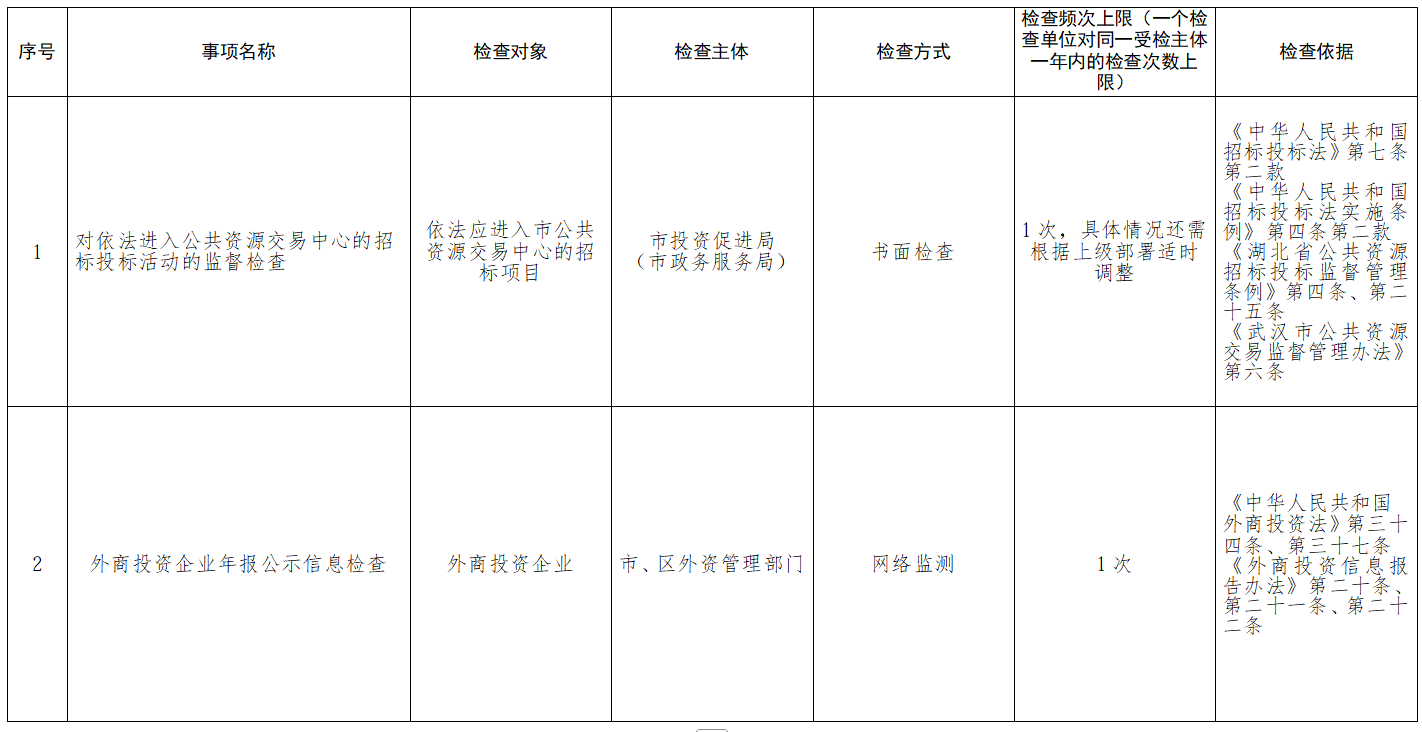 武汉市投资促进局(武汉市政务服务局)涉企行政检查事项清单