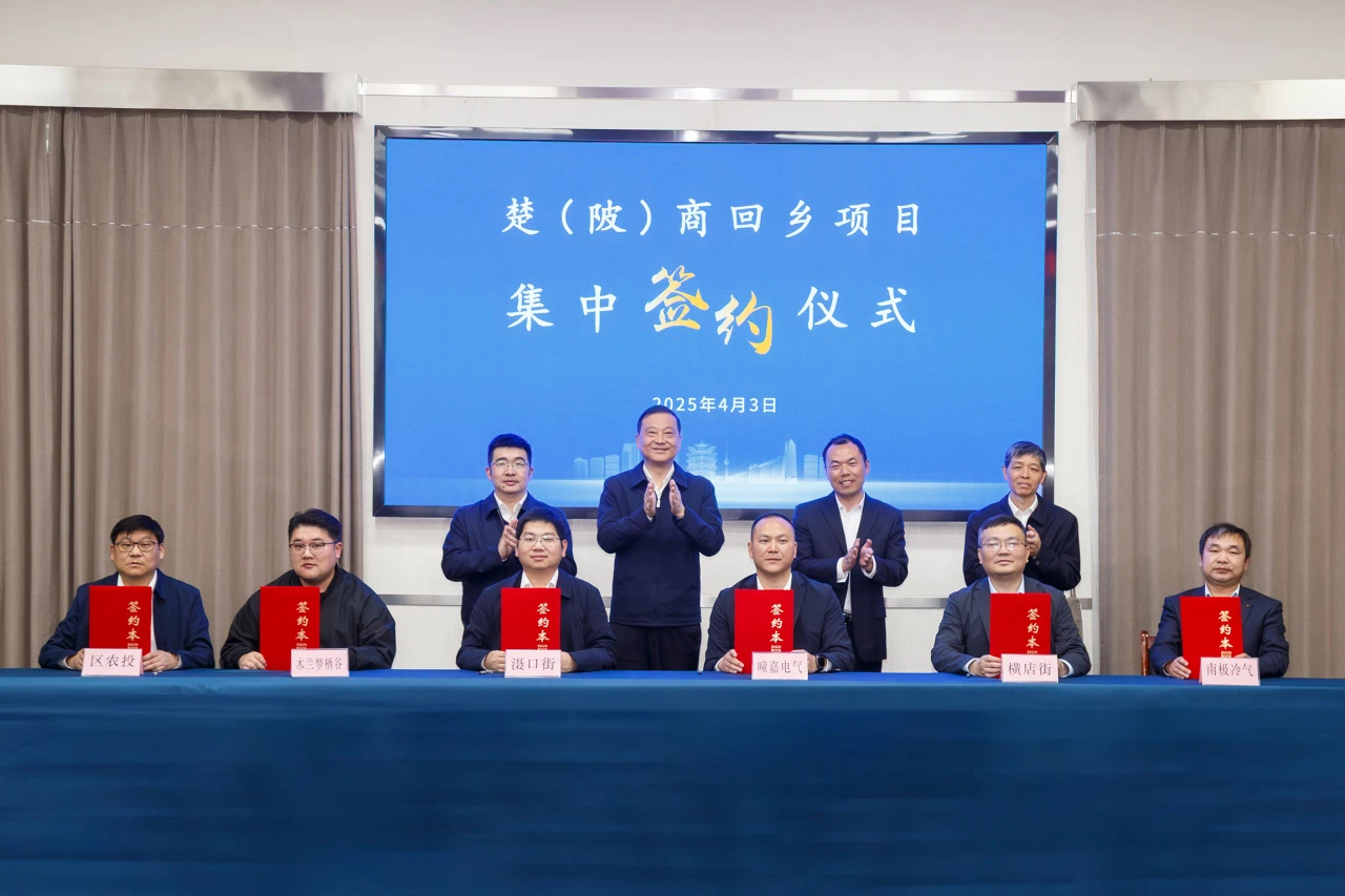 “楚材聚汉,共建支点”!4月3日,武汉市黄陂区举办政商恳谈会暨楚(陂)商回乡项目集中签约活动,总投资81.15亿元的7个项目落户黄陂,项目涵盖智能制造、文旅产业融合等多个领域。来自广东、上海、河北等黄陂商会代表、企业家代表共同见签,共绘兴业愿景。