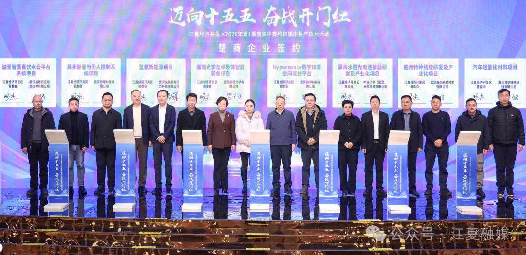 政企同心启新程,凝心聚力向新行。2月2日,江夏经济开发区举行2026年第一季度招商引资集中签约活动。现场集中签约32个重点项目,总投资100.9亿元。